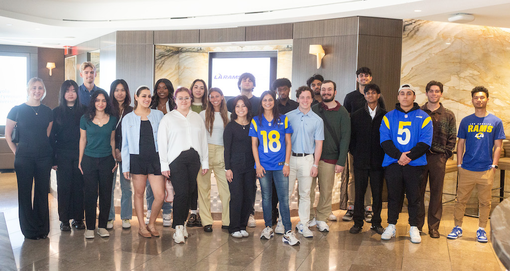 Economics Instructor Shirin Mollah and her sports economics students were given an inside look at the operations of the Los Angeles Rams during a two-day immersion featuring workshops, tours, and networking opportunities.